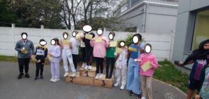 Chaque participant reçoit une médaille au nom de l’école.
