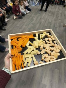 En lien avec notre projet d’année, la semaine du goût sur le thème du Nord a débuté par une dégustation de fromages. Bruno Toulemonde, artisan fromager et raffineur à Tourcoing, est venu à l’école pour nous faire découvrir son métier et surtout pour nous faire déguster 4 fromages typiques du Nord.