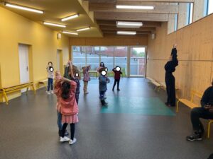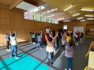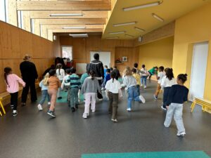 45 minutes d’initiation ont été donnés aux classes de grande section, CP, CE1 et CE2. Les élèves ont tous été très investis et appliqués à bien bouger et danser.